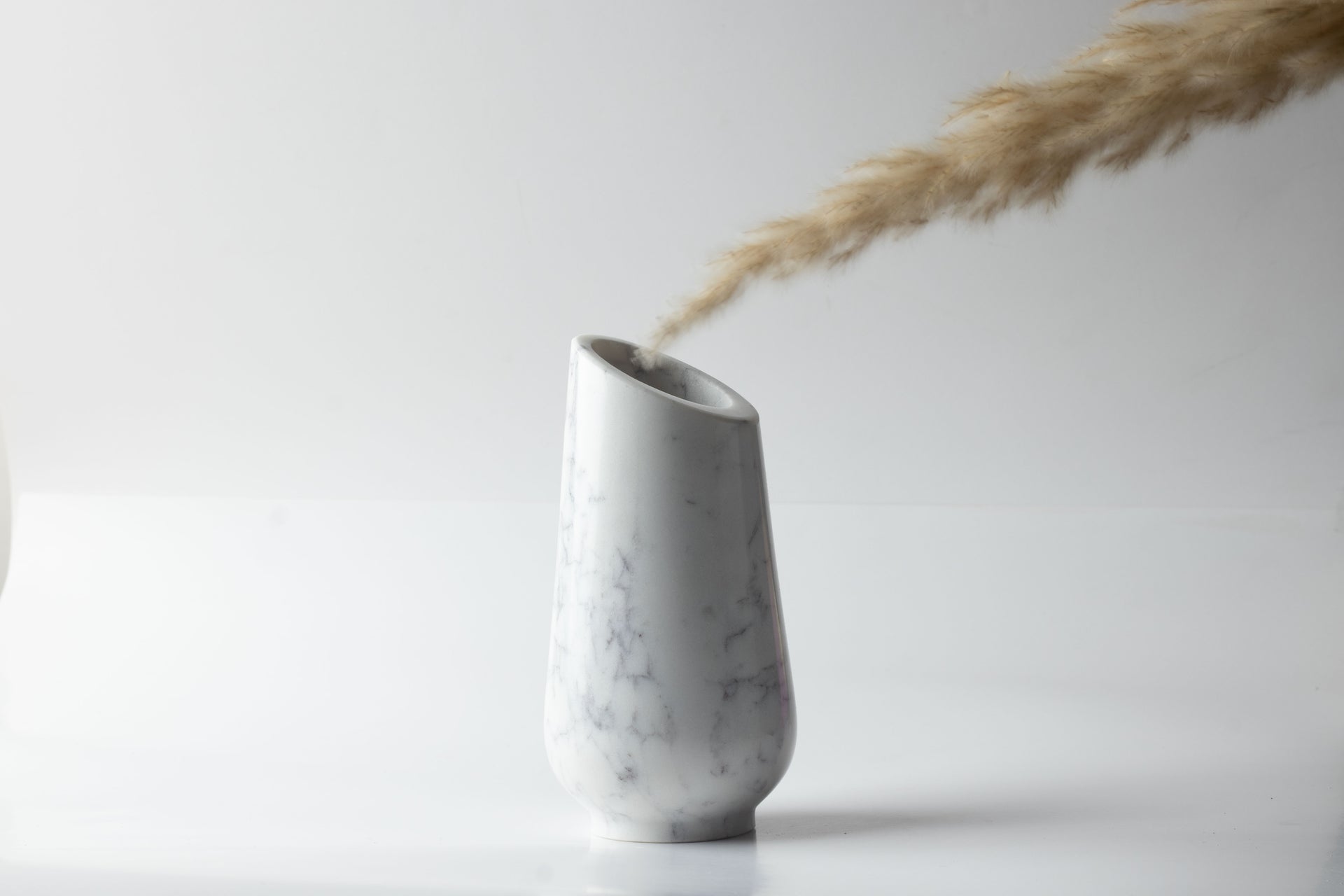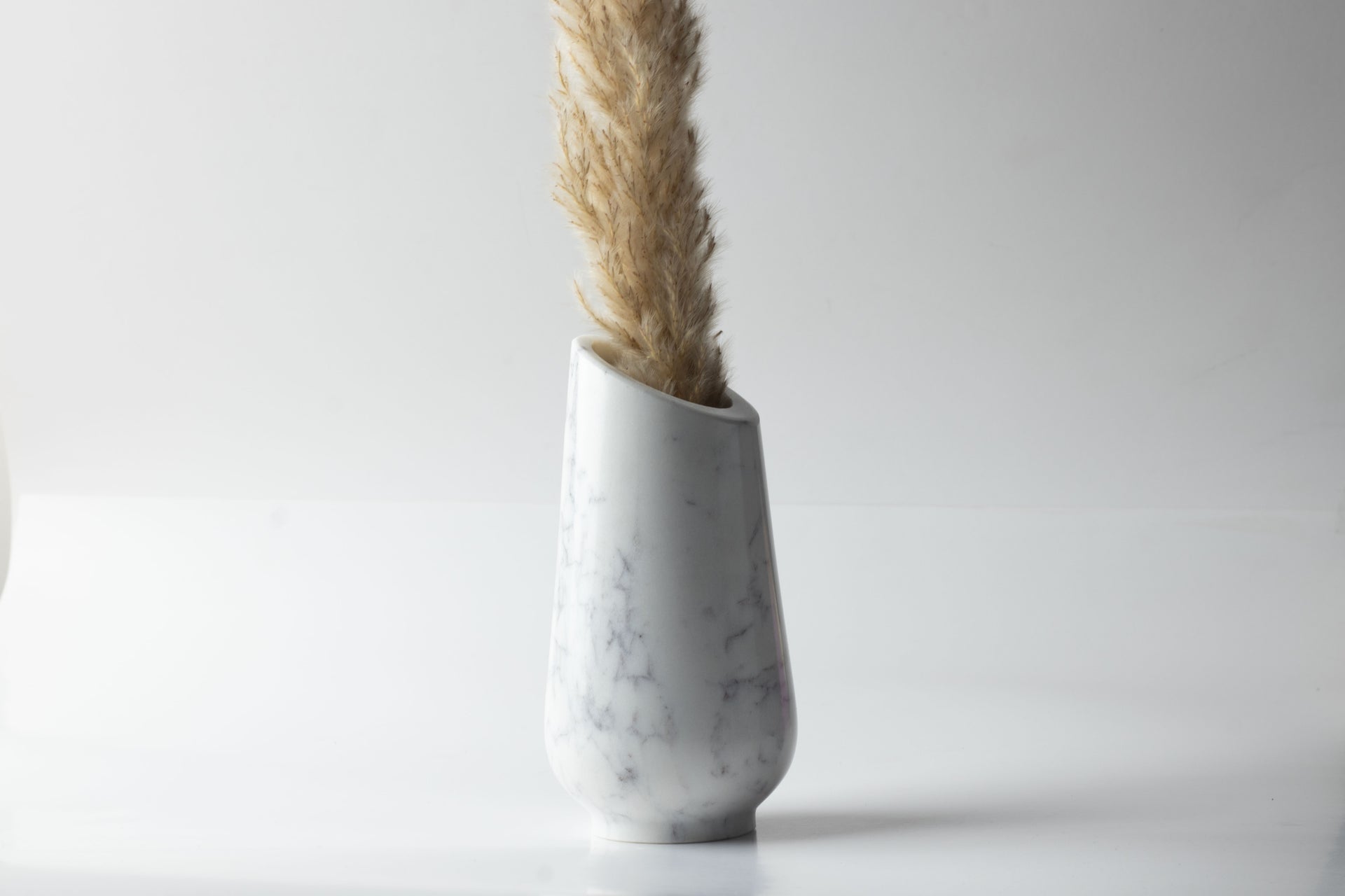 This is our Savio Marble Vase, made from white marble. It's perfect if you're looking to add a nice touch to your home. You can use it for decorating your room, placing it on a shelf, or even gifting it to someone special. The natural white marble gives it a rich and classy look. It's useful, beautiful, and made with care.