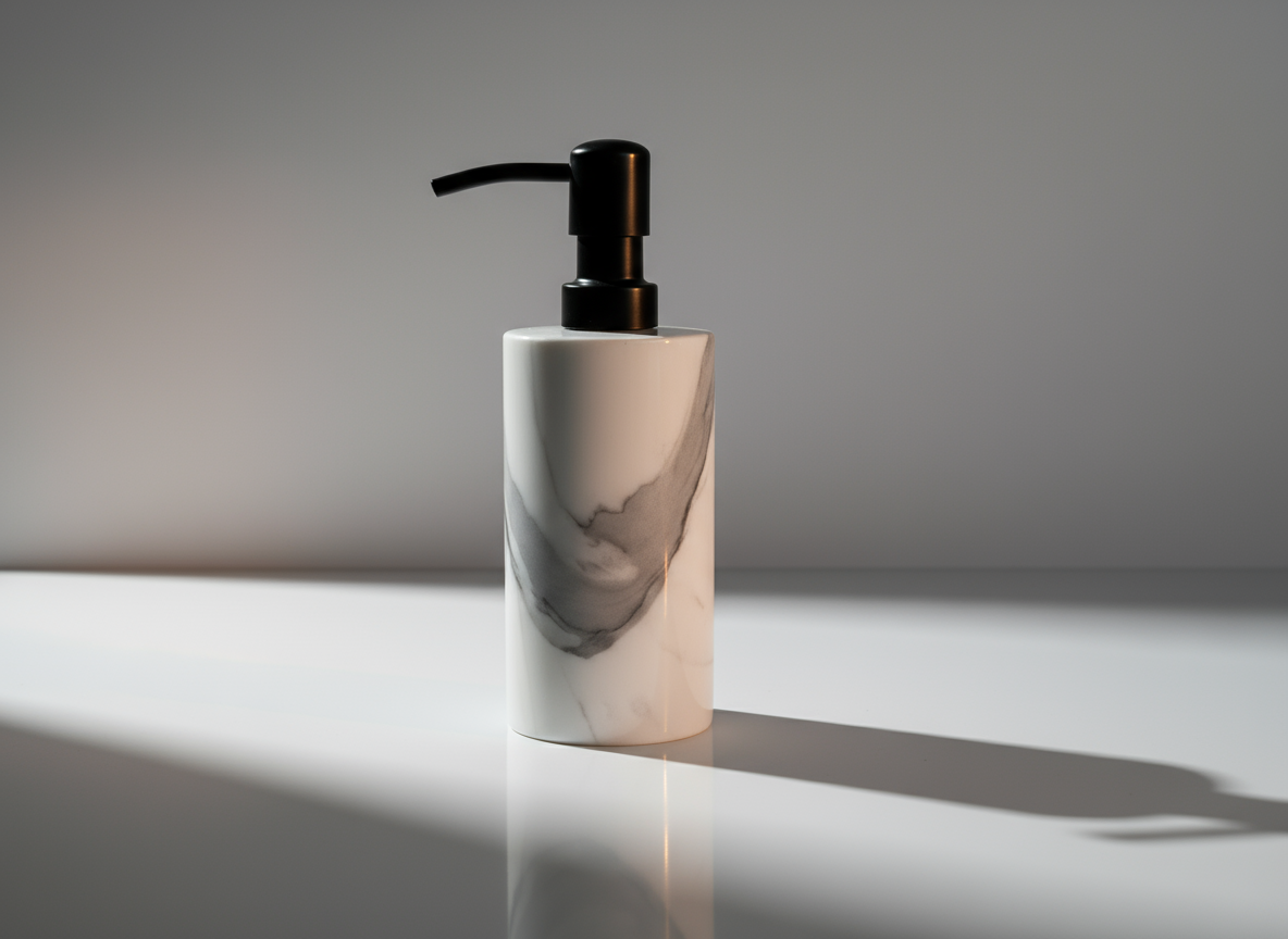 • Soap dispenser with a smooth pump for liquid soap or lotion.
