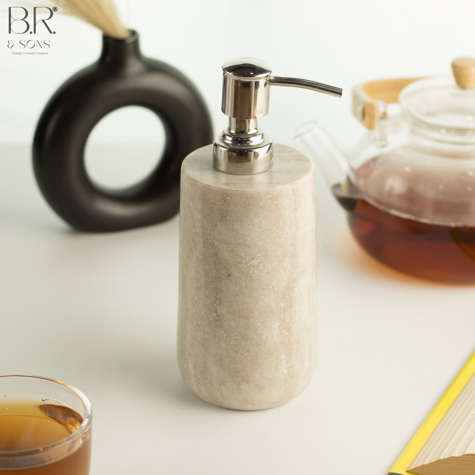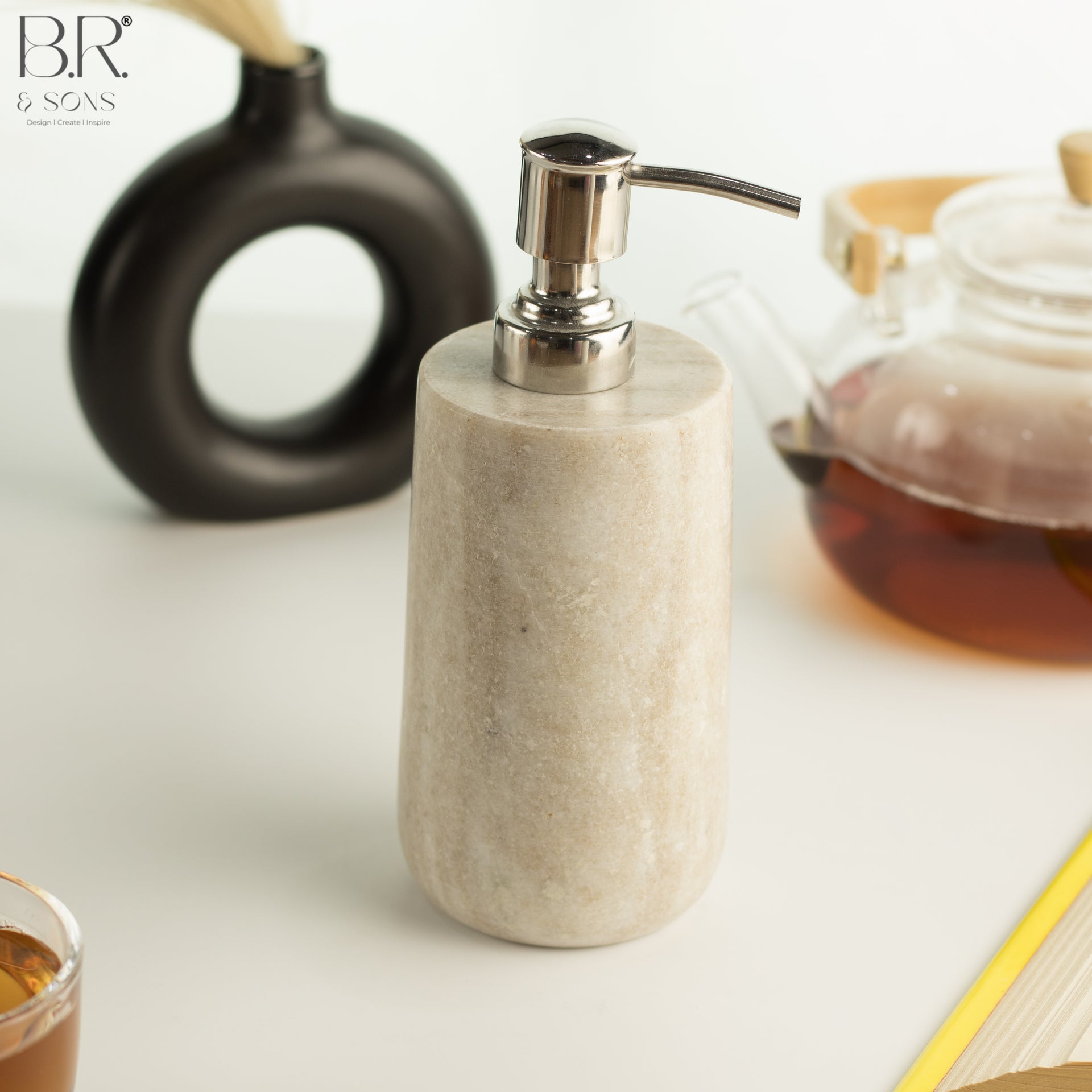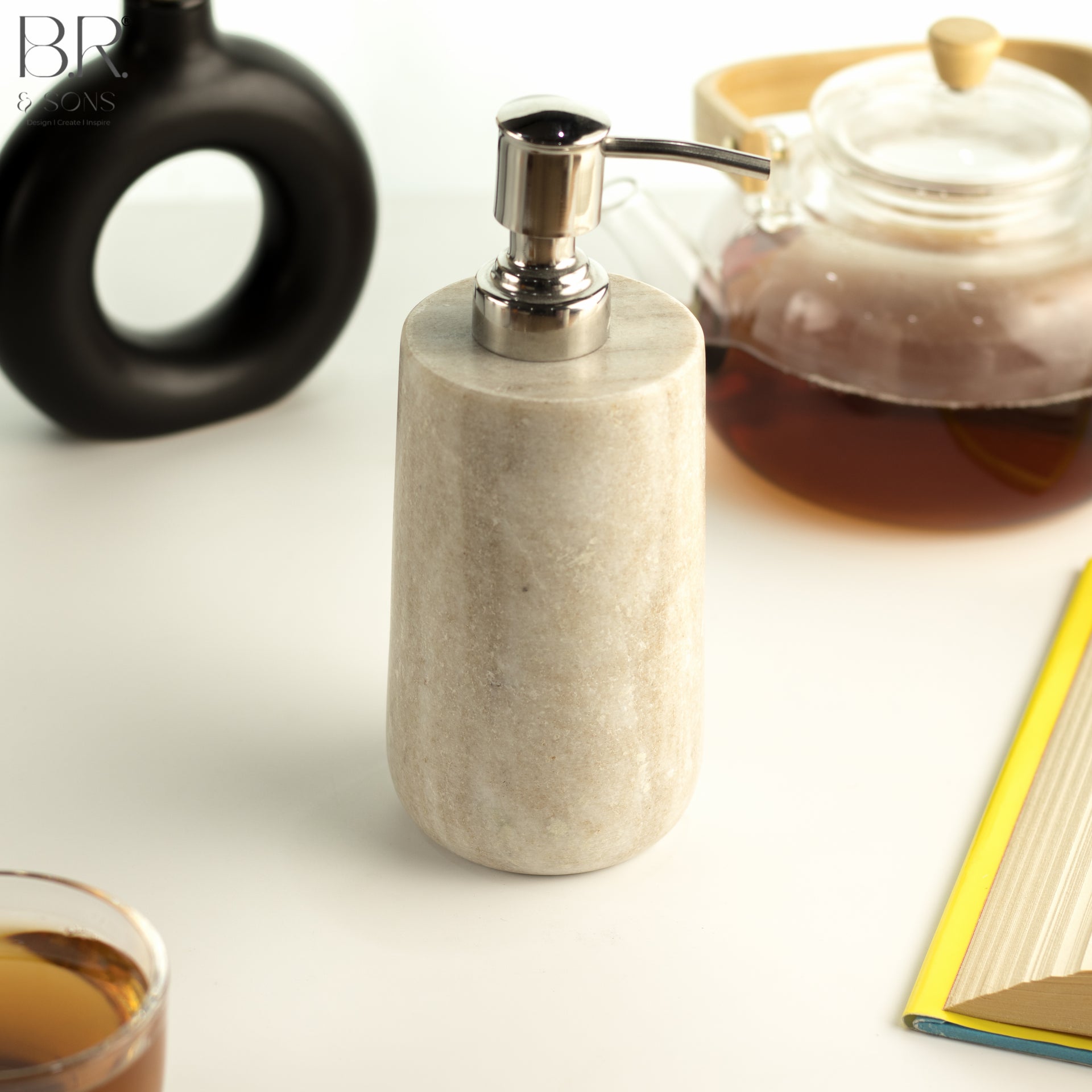 This is our Brown Marble Soap Dispenser, made from Brown Marble. It's perfect if you're looking to add a nice touch to your home. You can use it for decorating your room, placing it on a shelf, or even gifting it to someone special. The natural Brown Marble gives it a rich and classy look. It's useful, beautiful, and made with care.