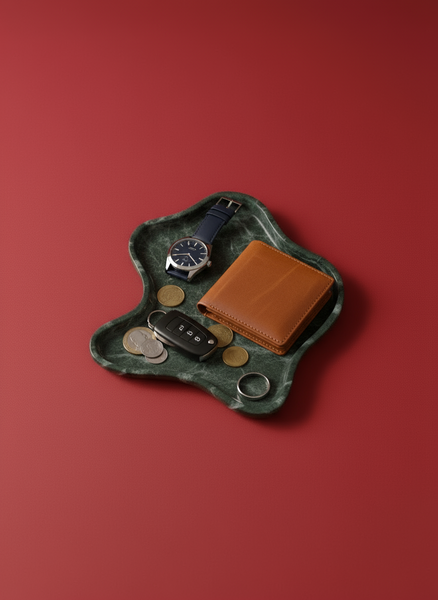 This green marble tray is a perfect balance of elegance and practicality, suitable for a range of uses in home or office settings.