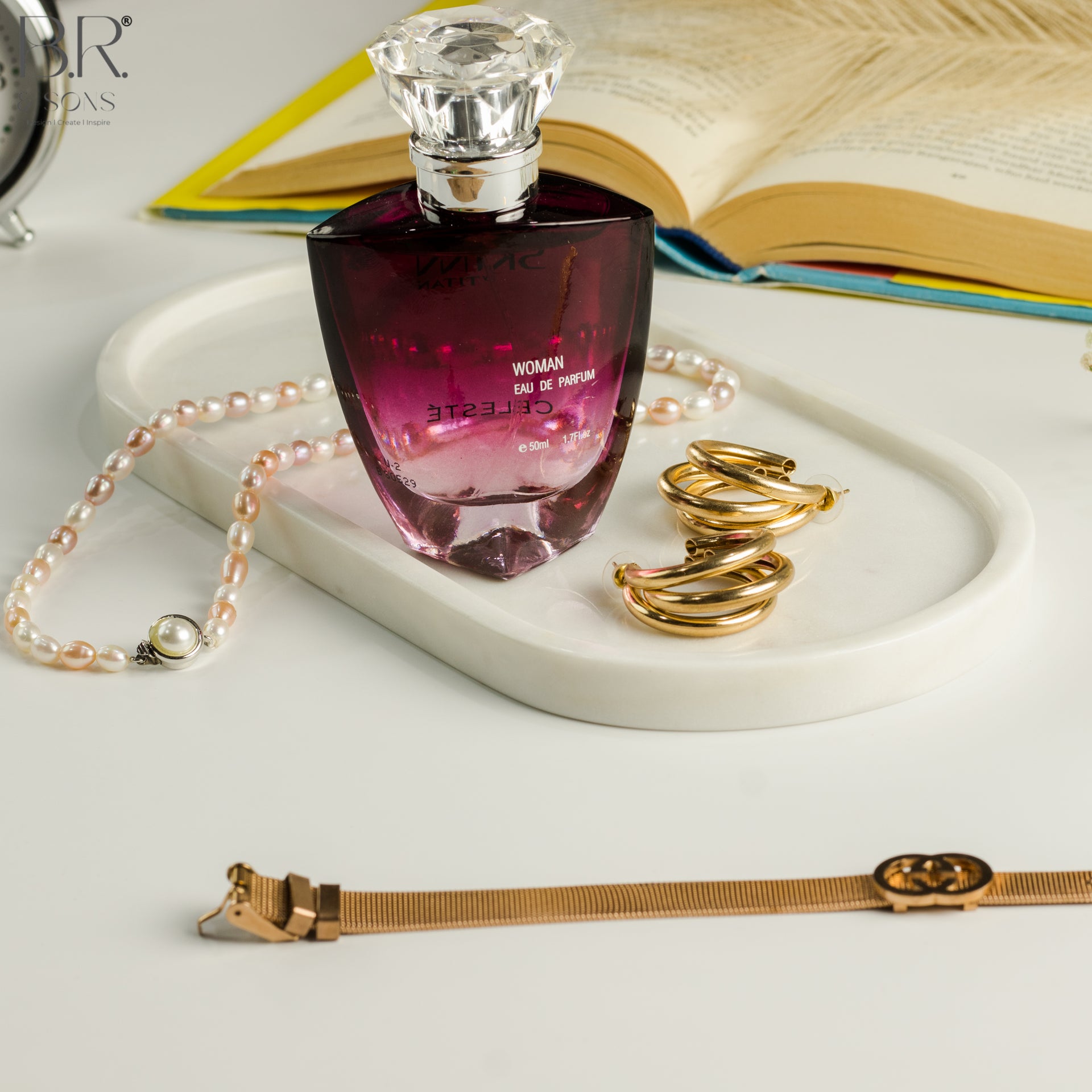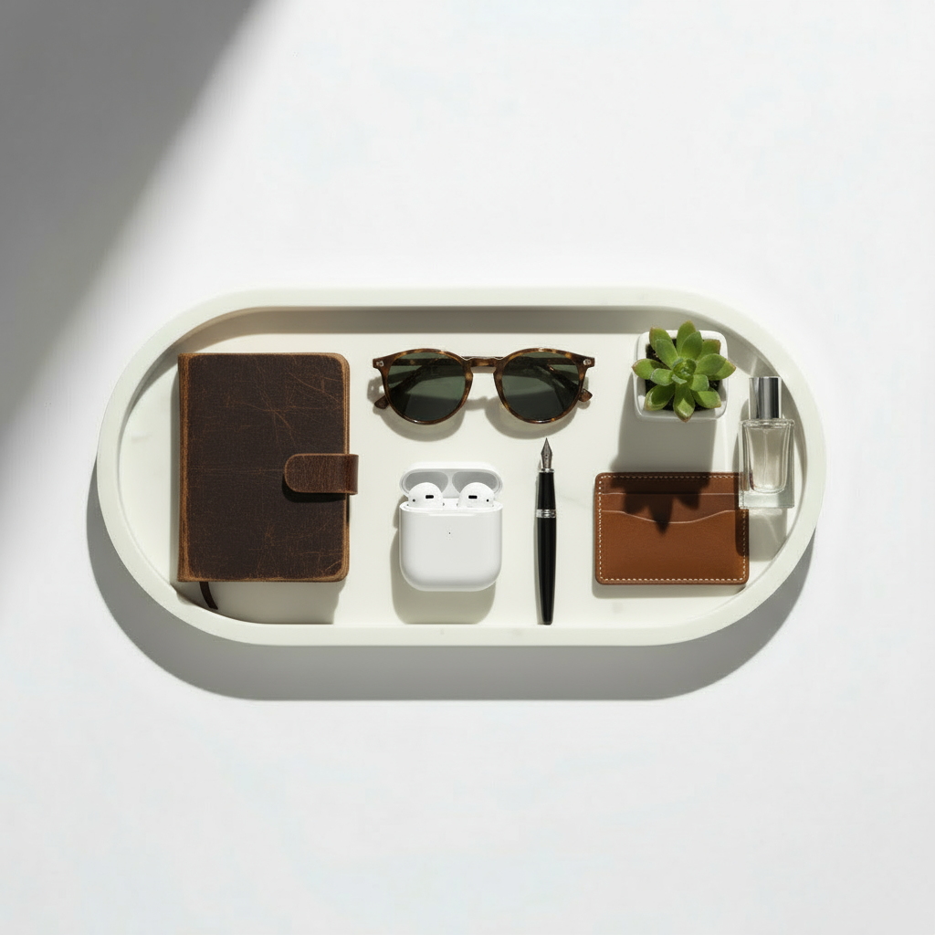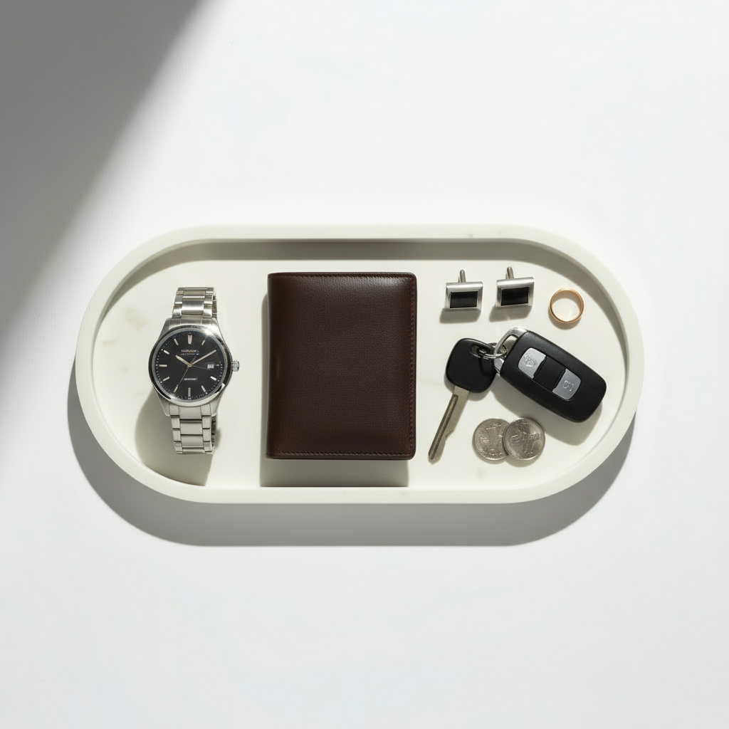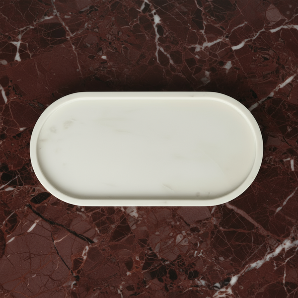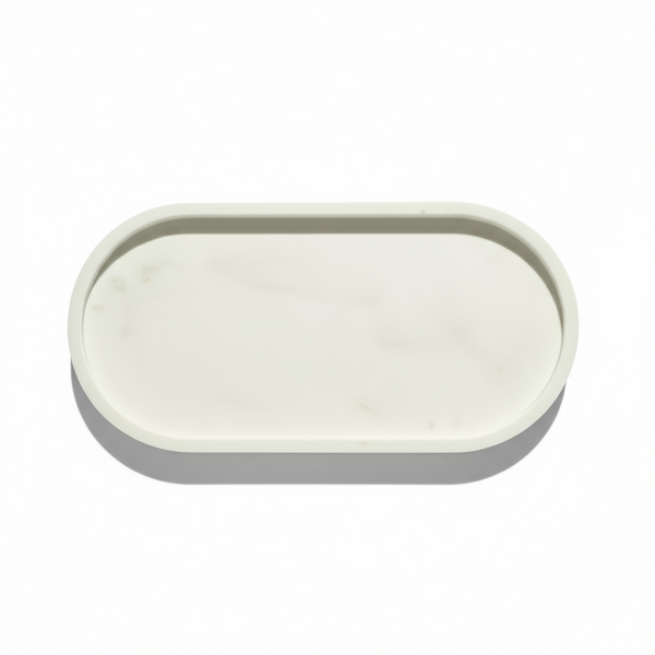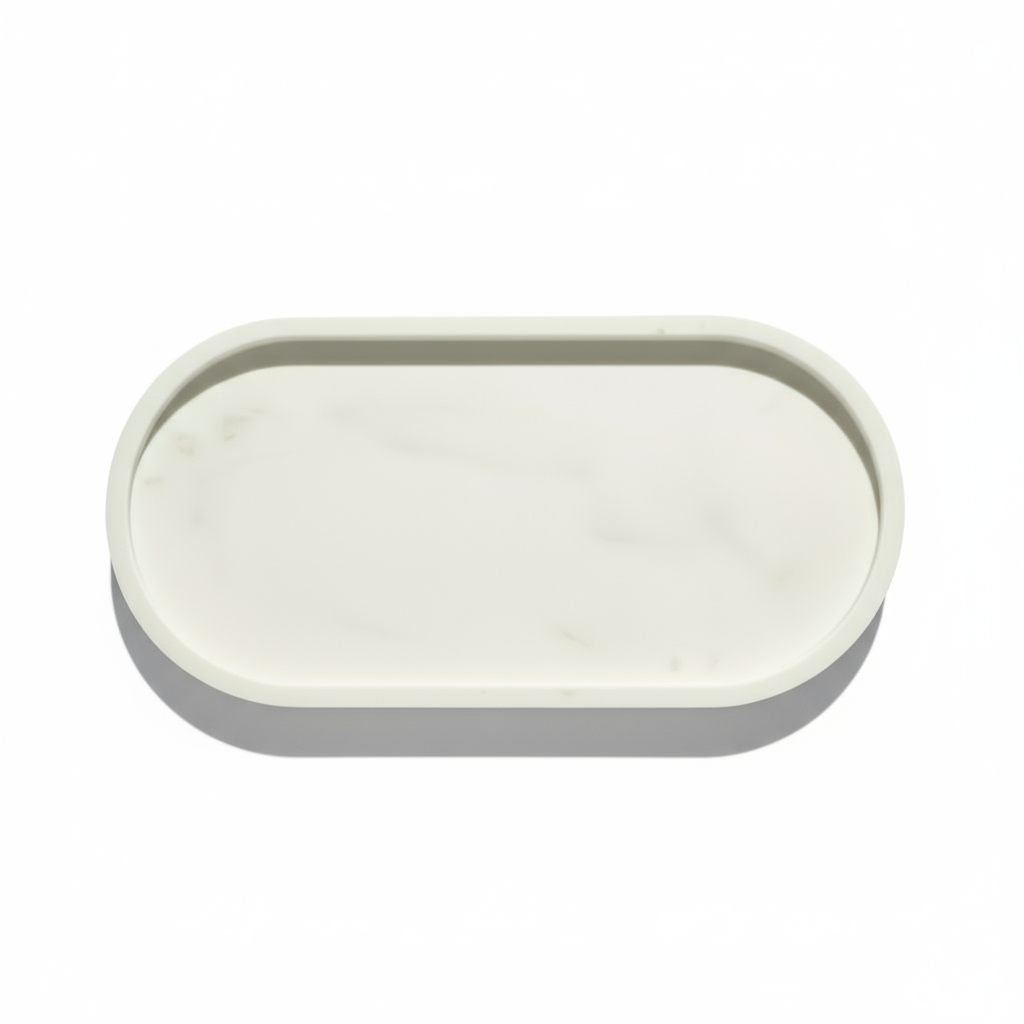 This is our White Oval Marble Tray, made from White Marble. It's perfect if you're looking to add a nice touch to your home. You can use it for decorating your room, placing it on a shelf, or even gifting it to someone special. The natural White Marble gives it a rich and classy look. It's useful, beautiful, and made with care.