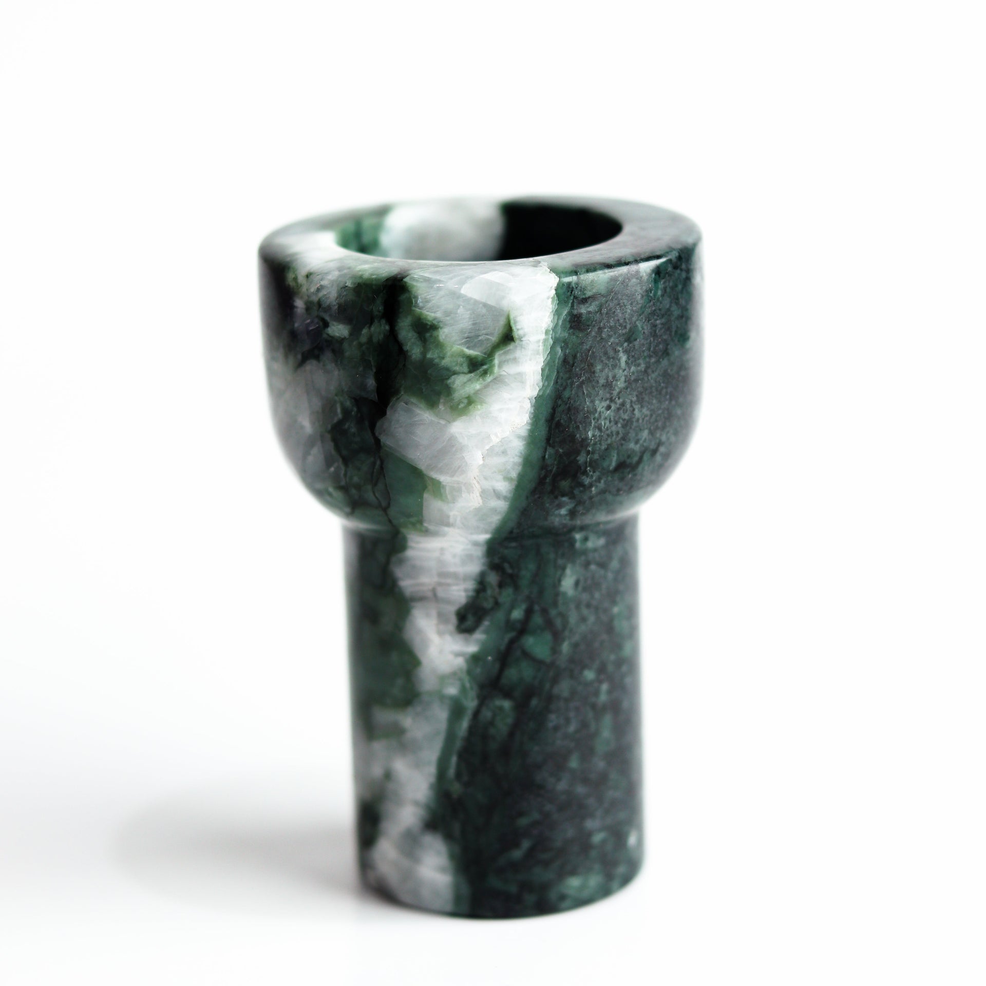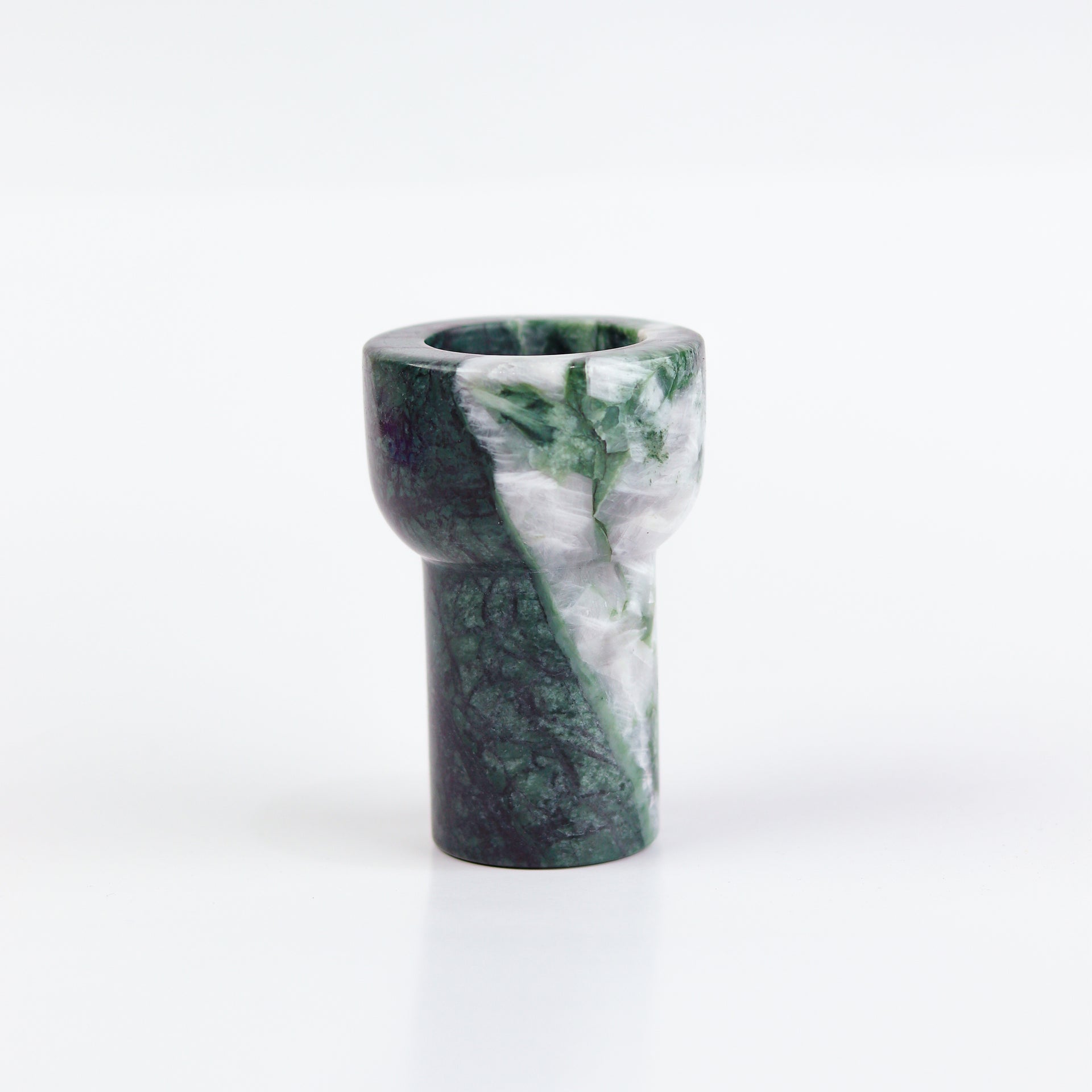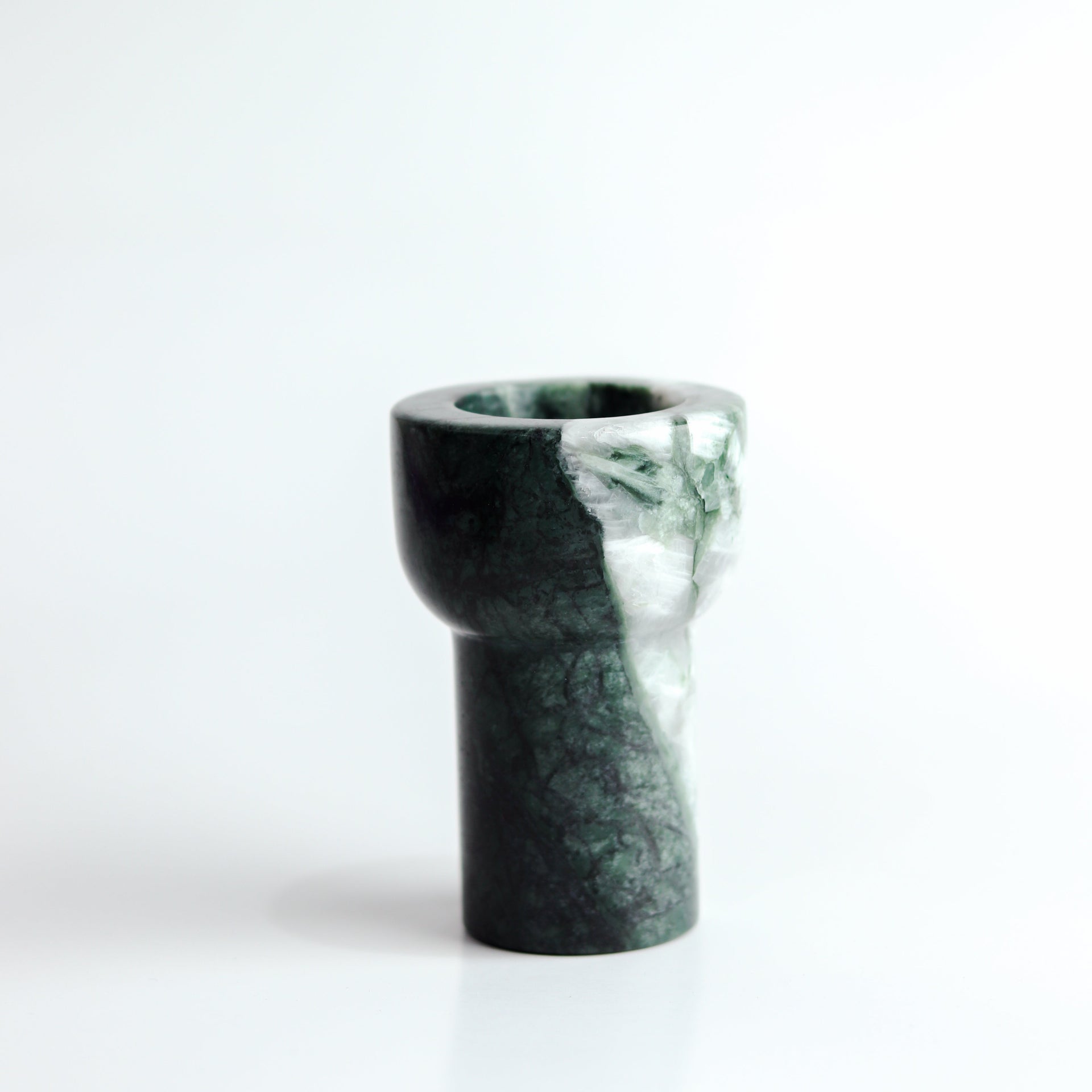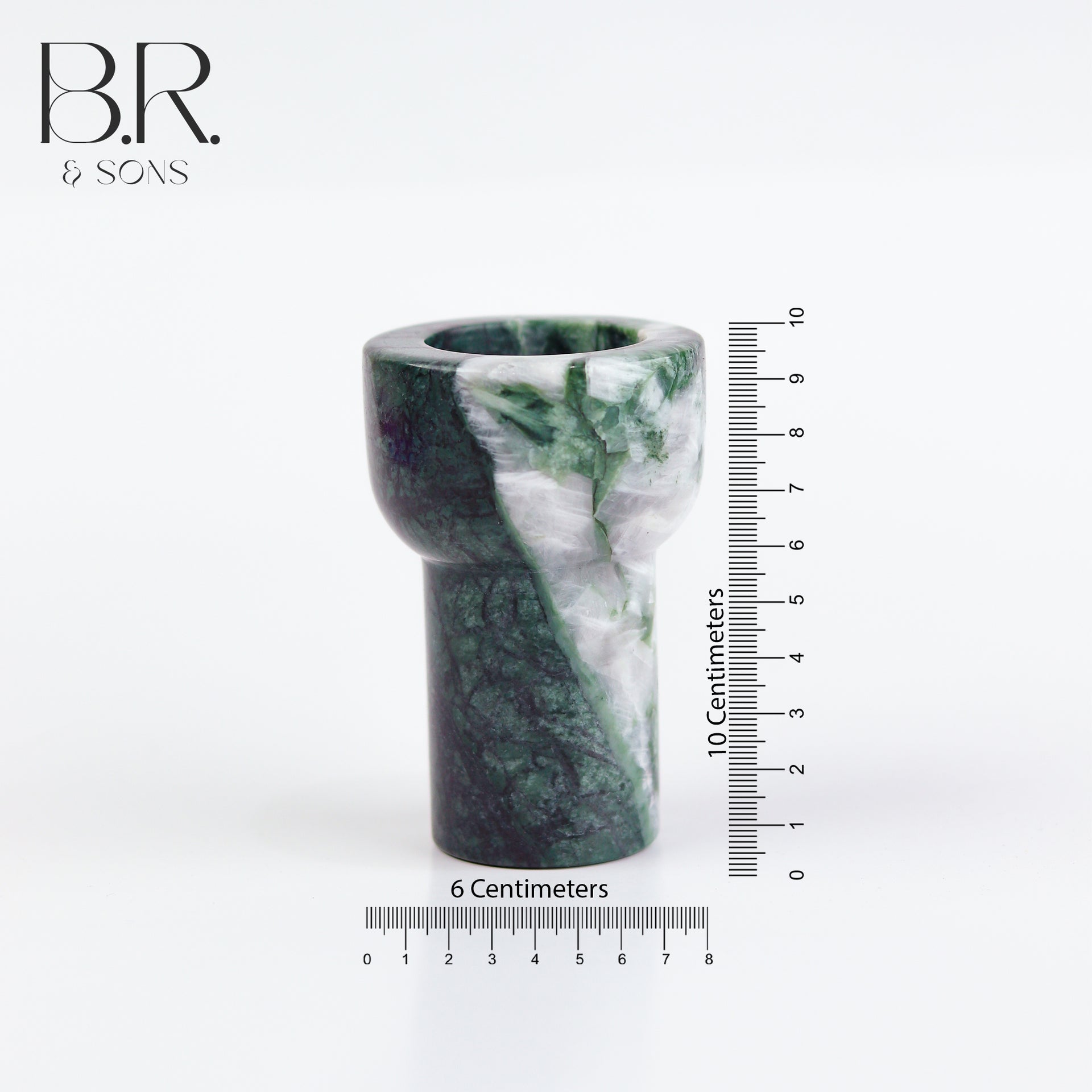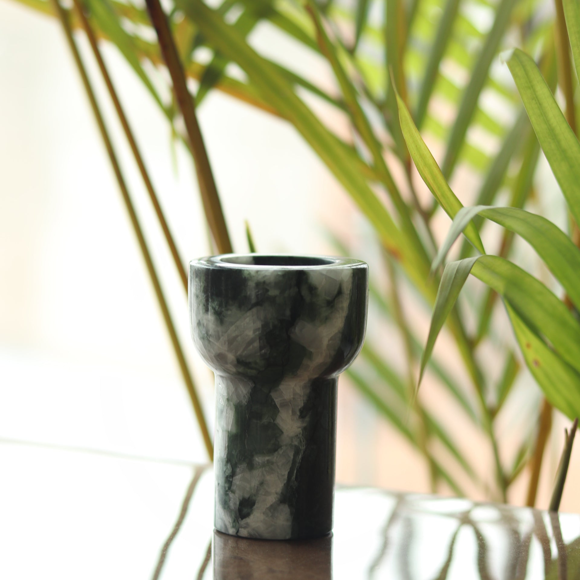 This is our GREEN MASHAAL CANDLE HOLDER, made from GREEN MARBLE. It's perfect if you're looking to add a nice touch to your home. You can use it for decorating your room, placing it on a shelf, or even gifting it to someone special. The natural GREEN MARBLE gives it a rich and classy look. It's useful, beautiful, and made with care.