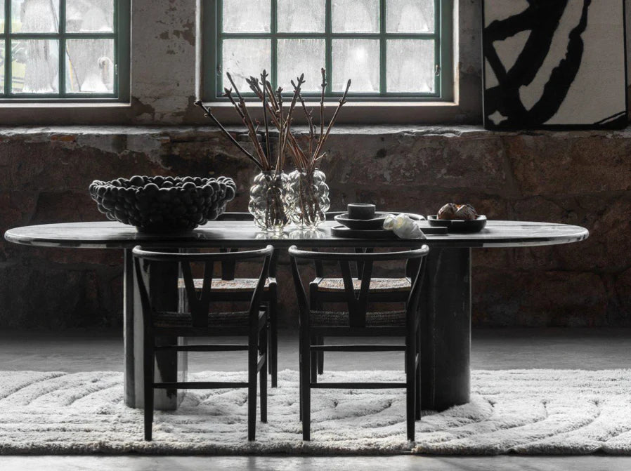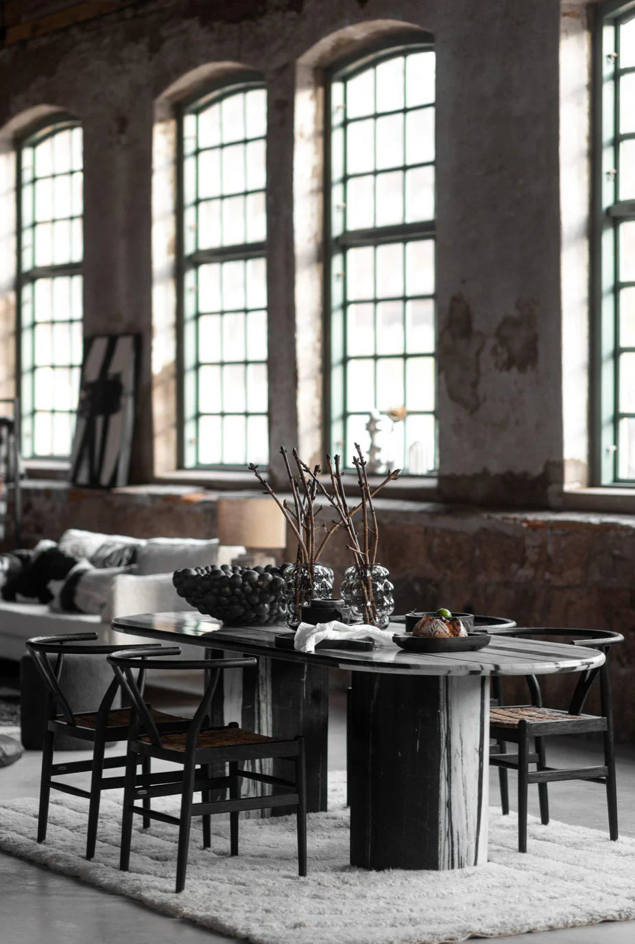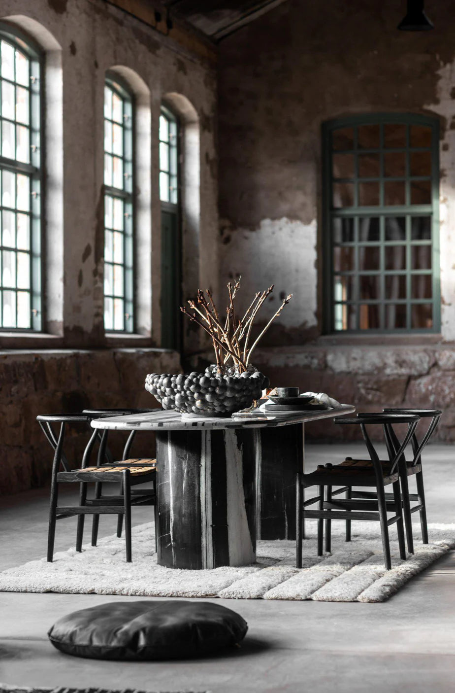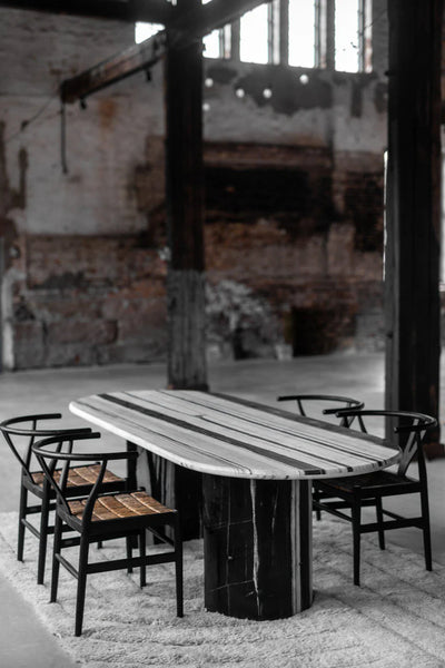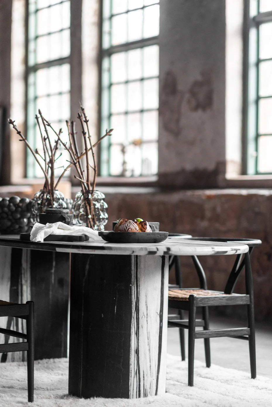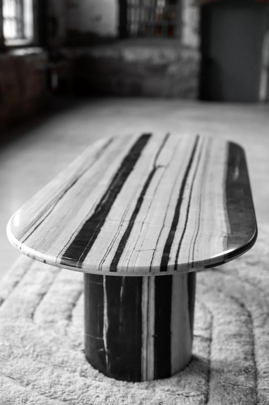 Elevate your interior with our Majestic Panda White marble dining table. Crafted from unique and stunning Panda White marble, each table is one of a kind. Its timeless design emanates sophistication, while the vibrant stone pattern adds a touch of boldness. Make a lasting impression with a quality, enduring centerpiece.