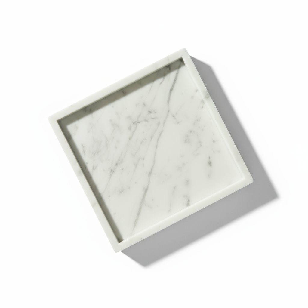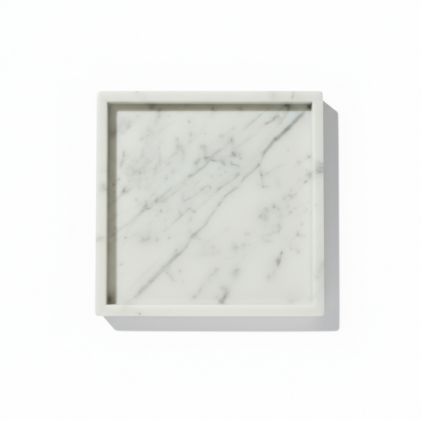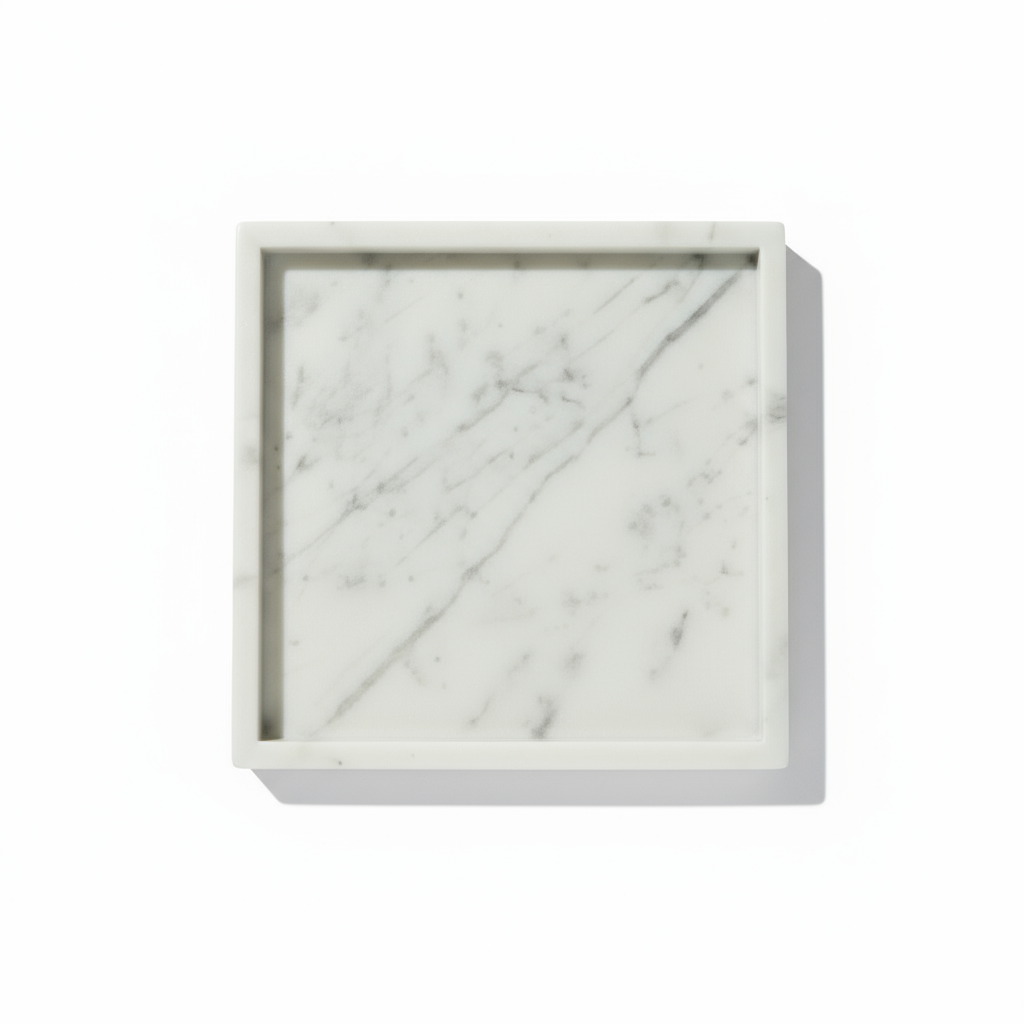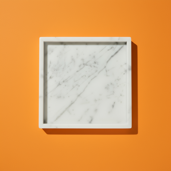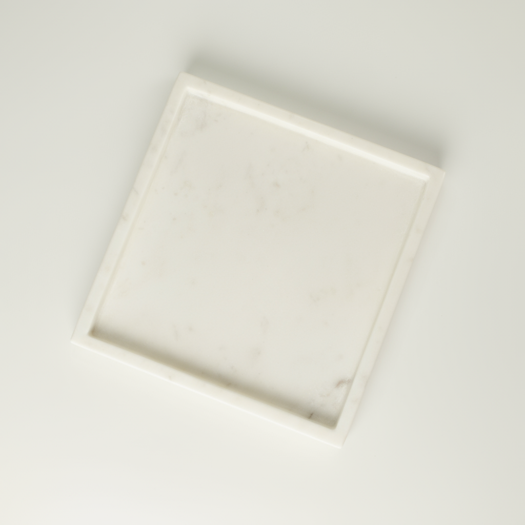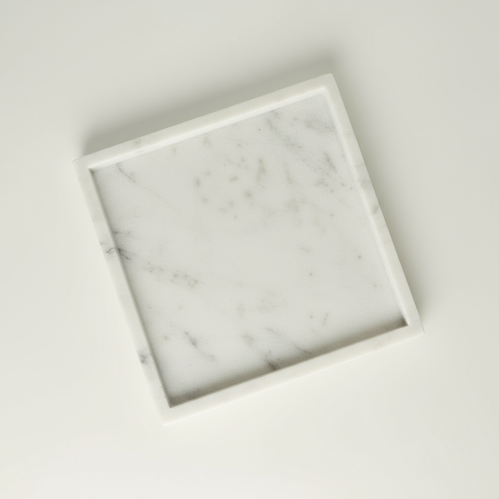 This is our Square Marble Tray ( White ), made from white marble. It's perfect if you're looking to add a nice touch to your home. You can use it for decorating your room, placing it on a shelf, or even gifting it to someone special. The natural white marble gives it a rich and classy look. It's useful, beautiful, and made with care.