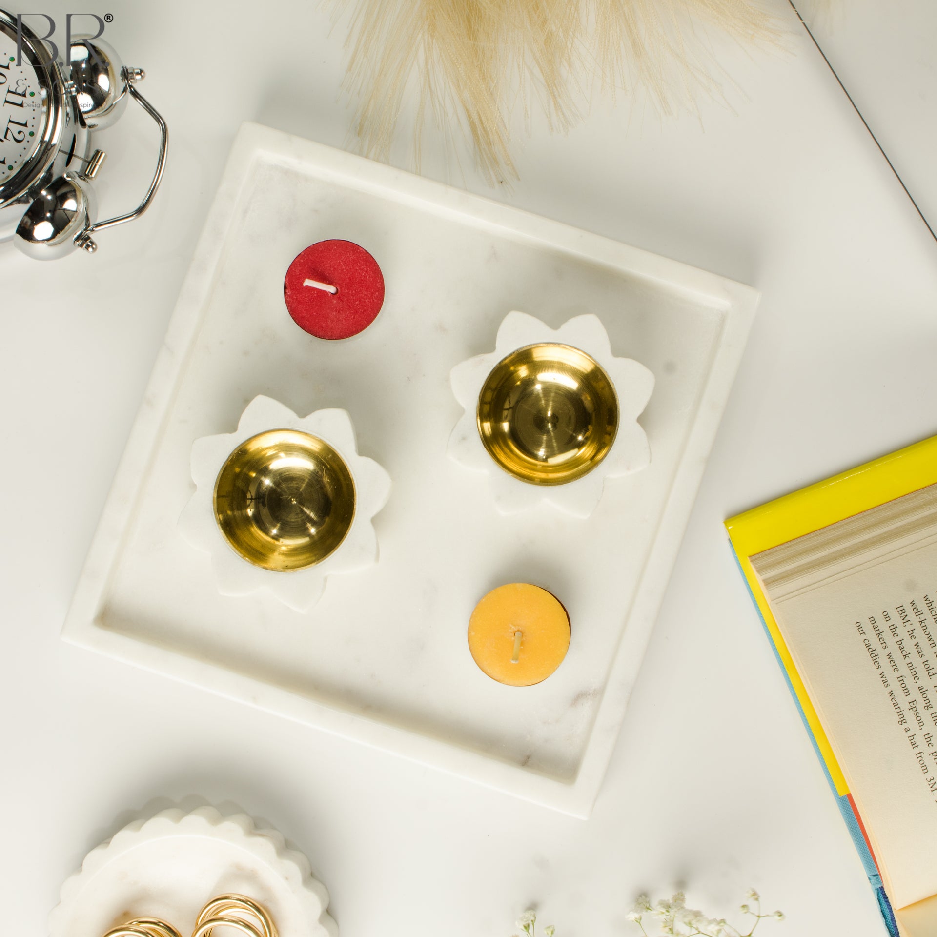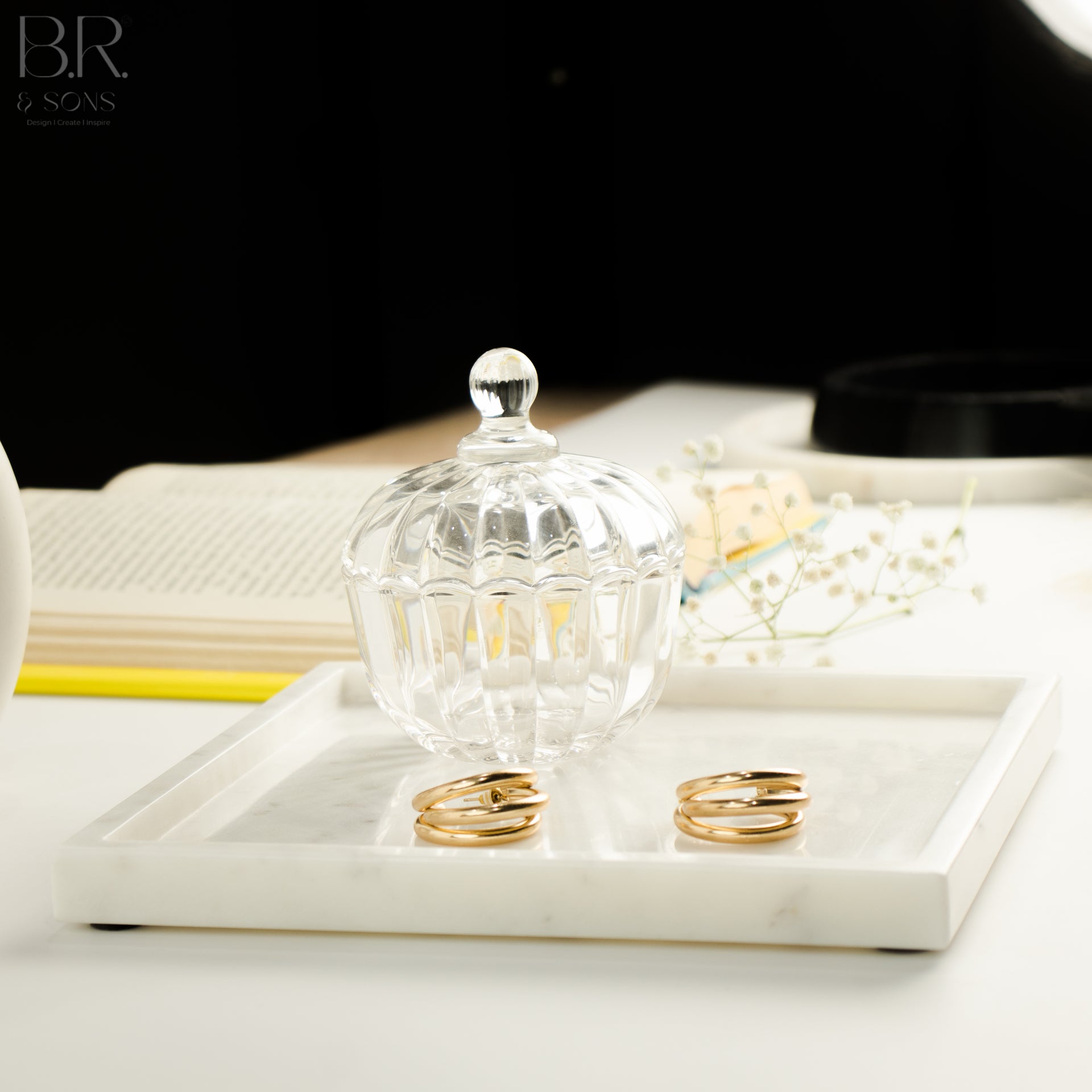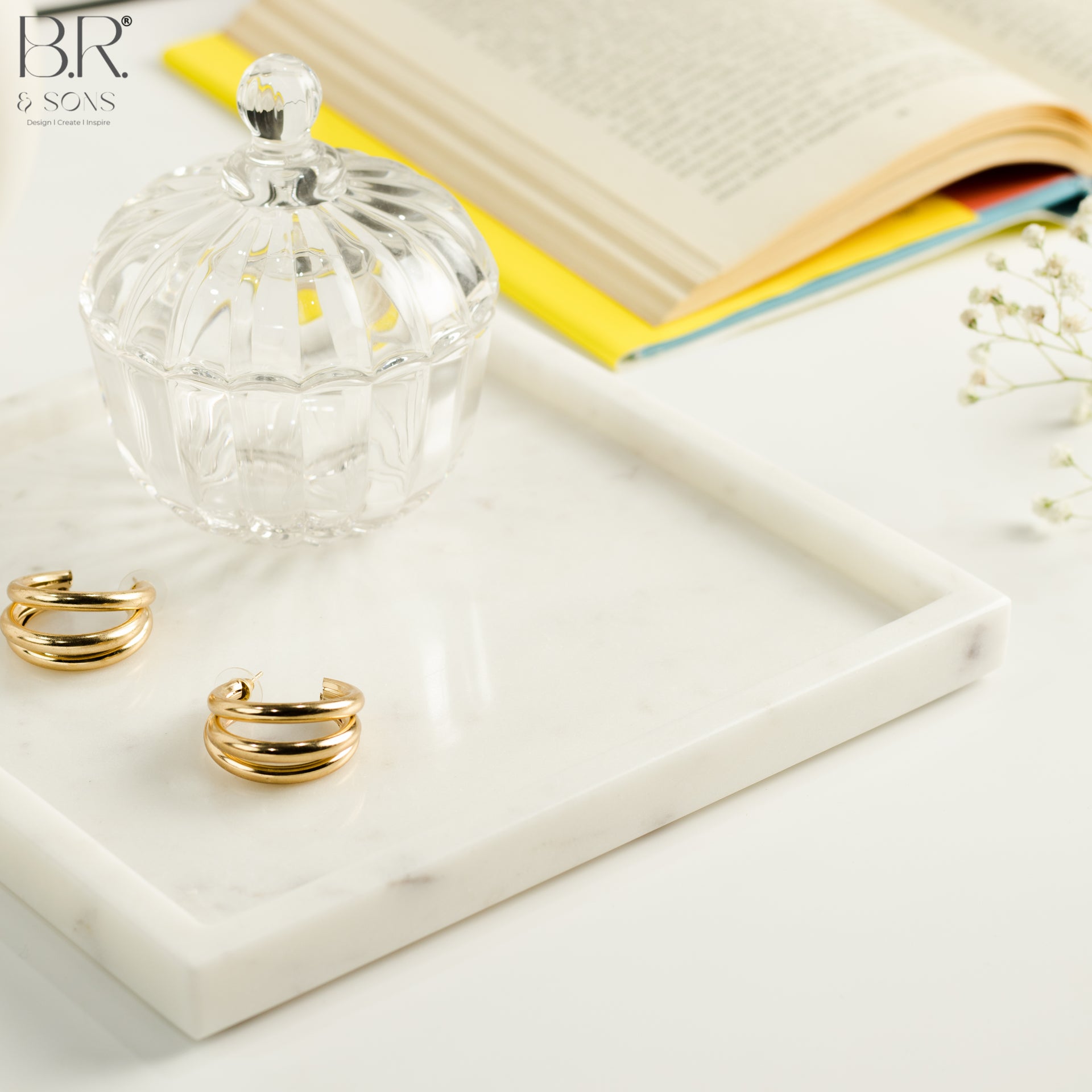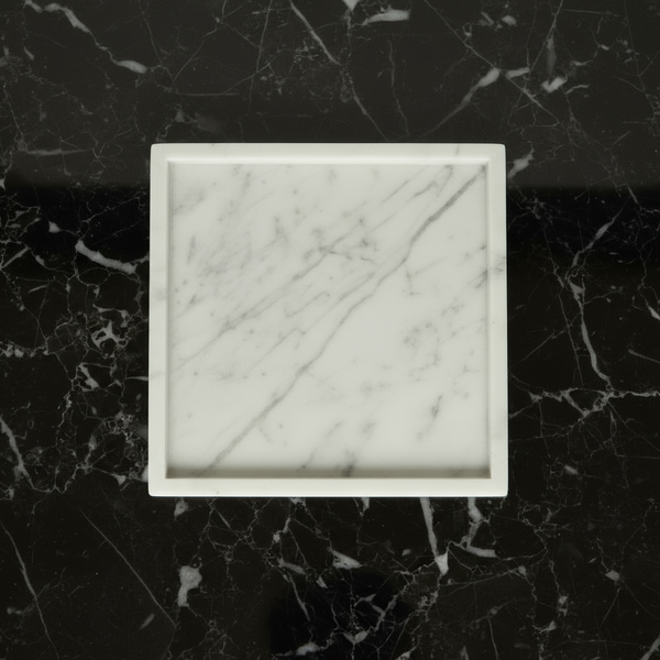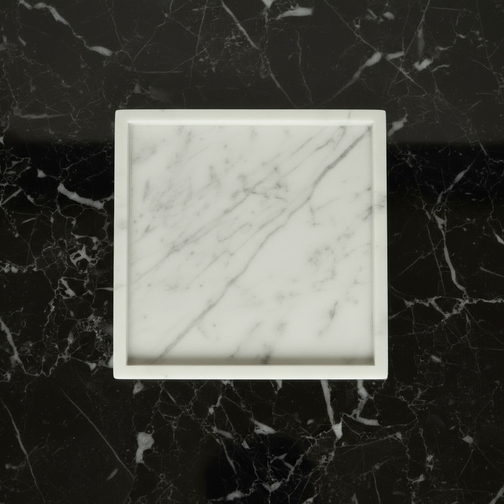 This is our Square Marble Tray ( White ), made from white marble. It's perfect if you're looking to add a nice touch to your home. You can use it for decorating your room, placing it on a shelf, or even gifting it to someone special. The natural white marble gives it a rich and classy look. It's useful, beautiful, and made with care.