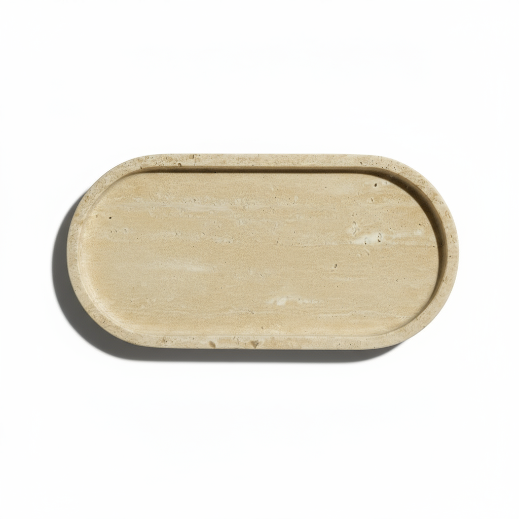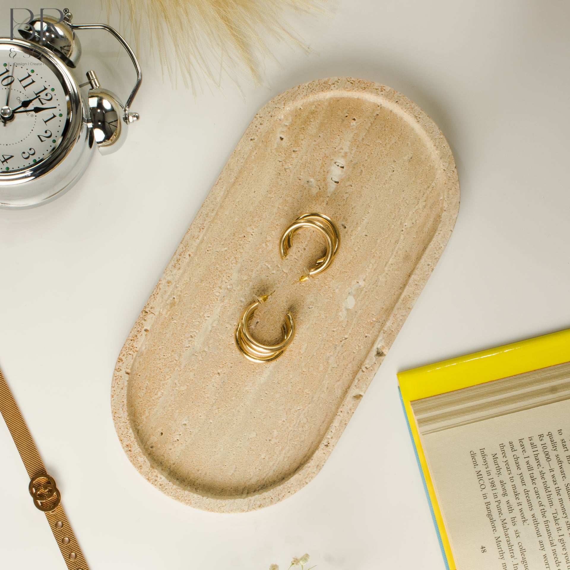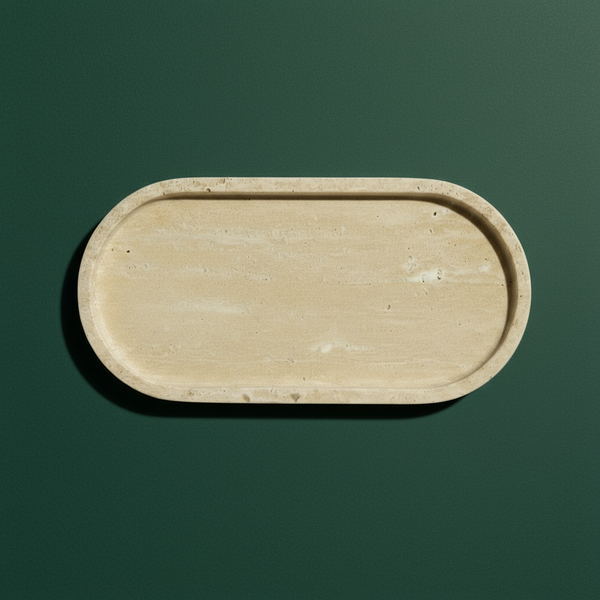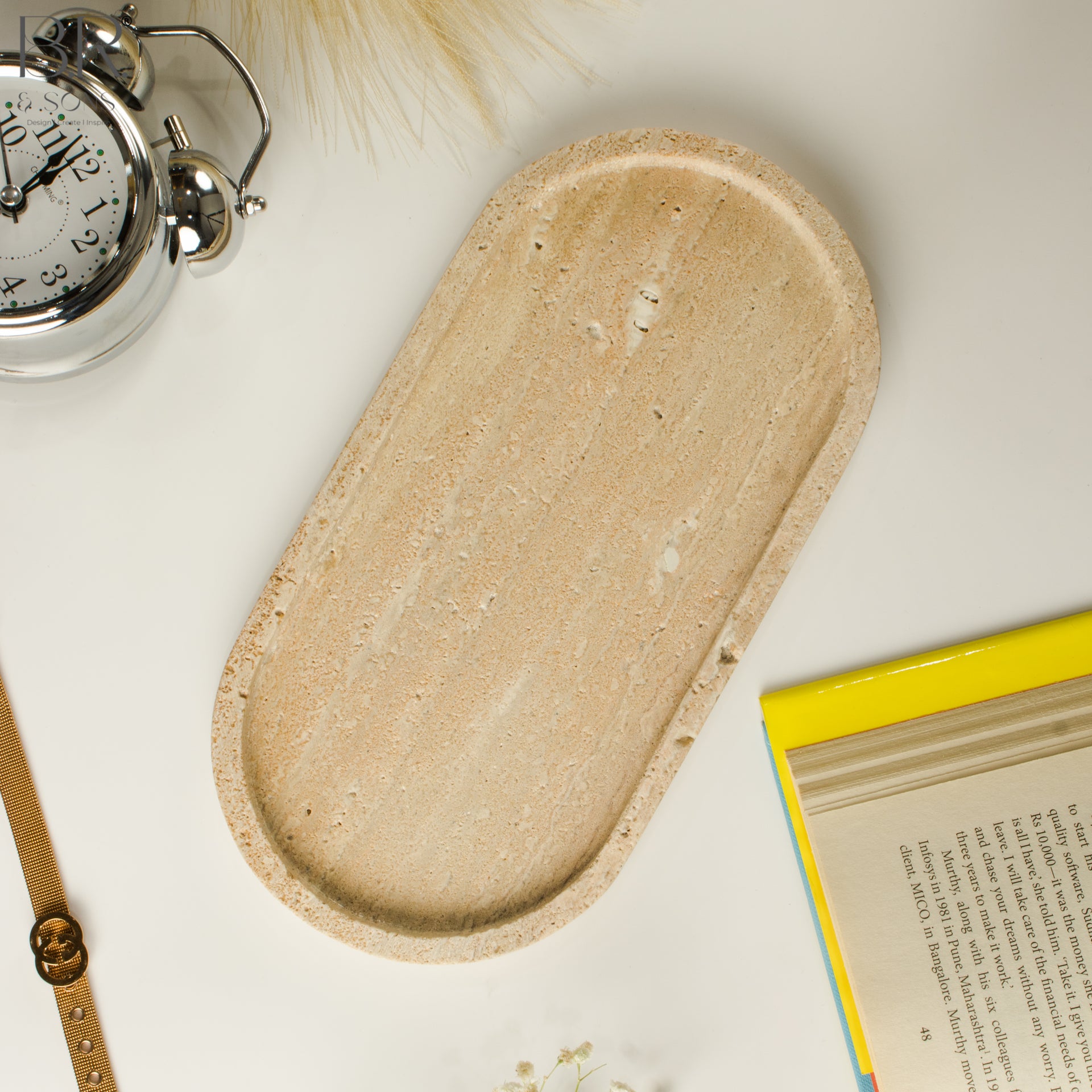 This is our Travertine Oval Marble Tray, made from Imported Turkish Matble. It's perfect if you're looking to add a nice touch to your home. You can use it for decorating your room, placing it on a shelf, or even gifting it to someone special. The natural Imported Turkish Matble gives it a rich and classy look. It's useful, beautiful, and made with care.