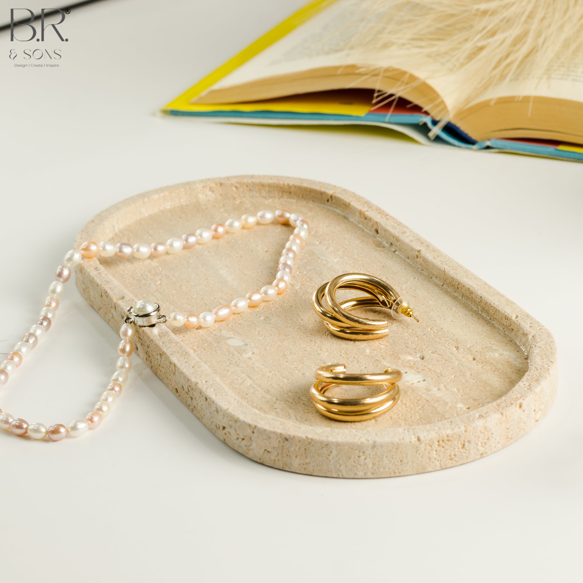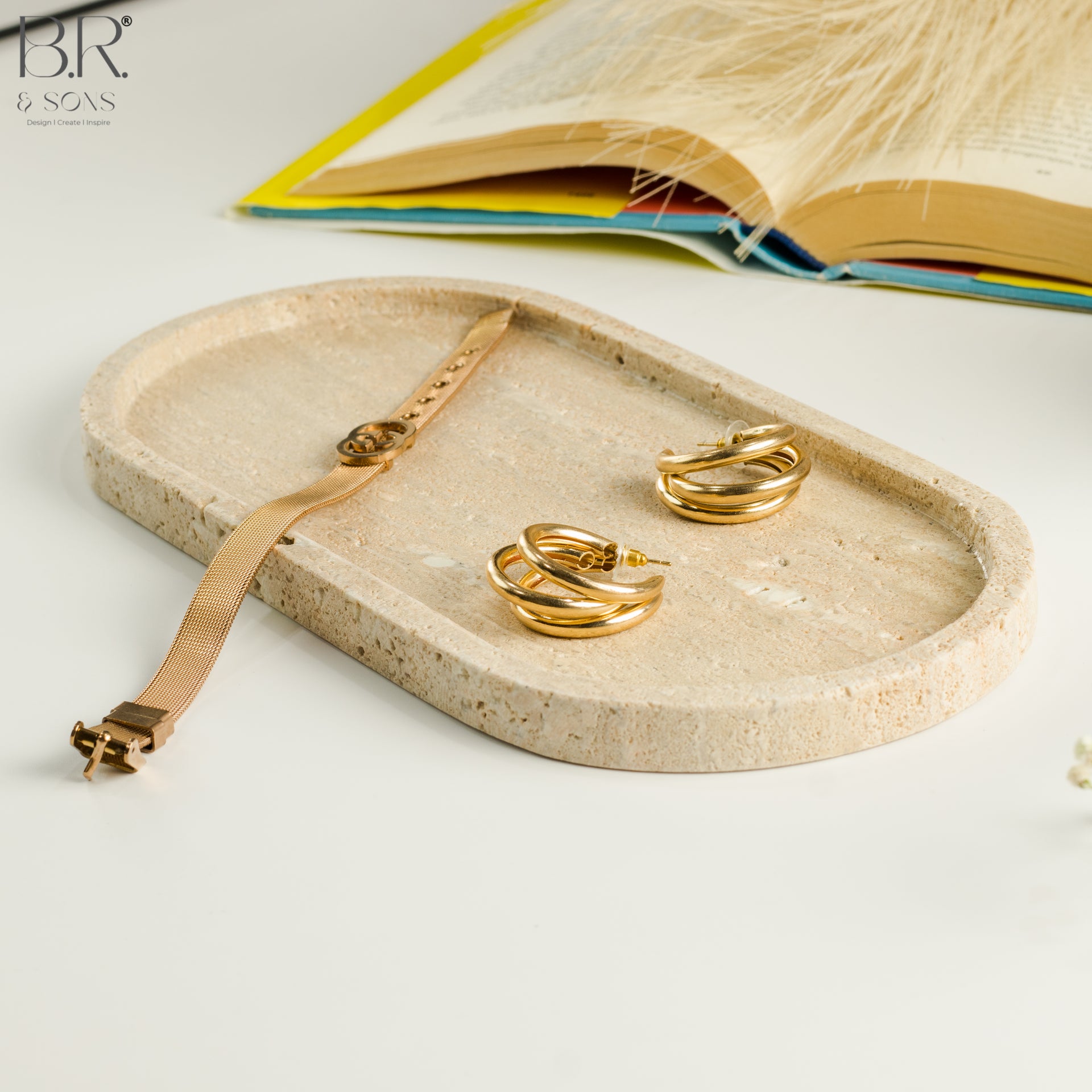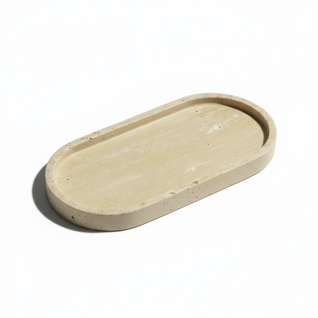 This is our Travertine Oval Marble Tray, made from Imported Turkish Matble. It's perfect if you're looking to add a nice touch to your home. You can use it for decorating your room, placing it on a shelf, or even gifting it to someone special. The natural Imported Turkish Matble gives it a rich and classy look. It's useful, beautiful, and made with care.