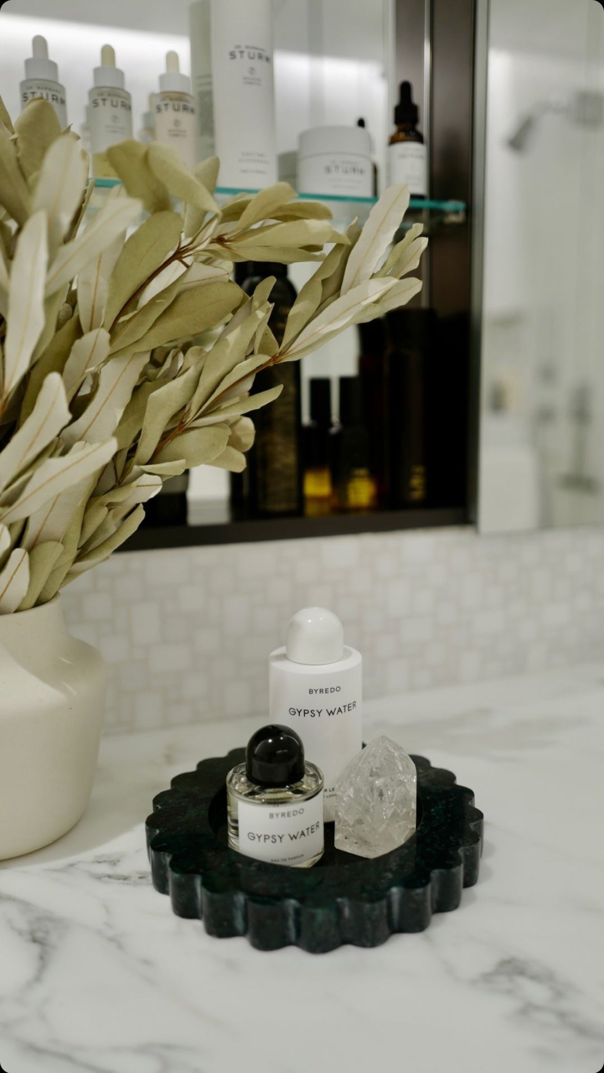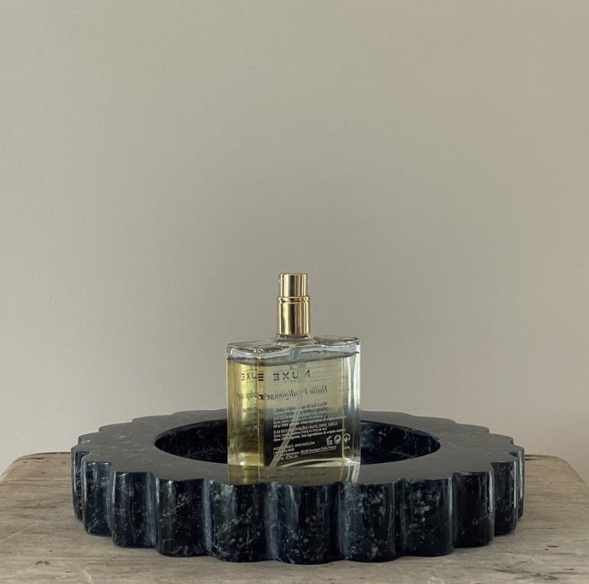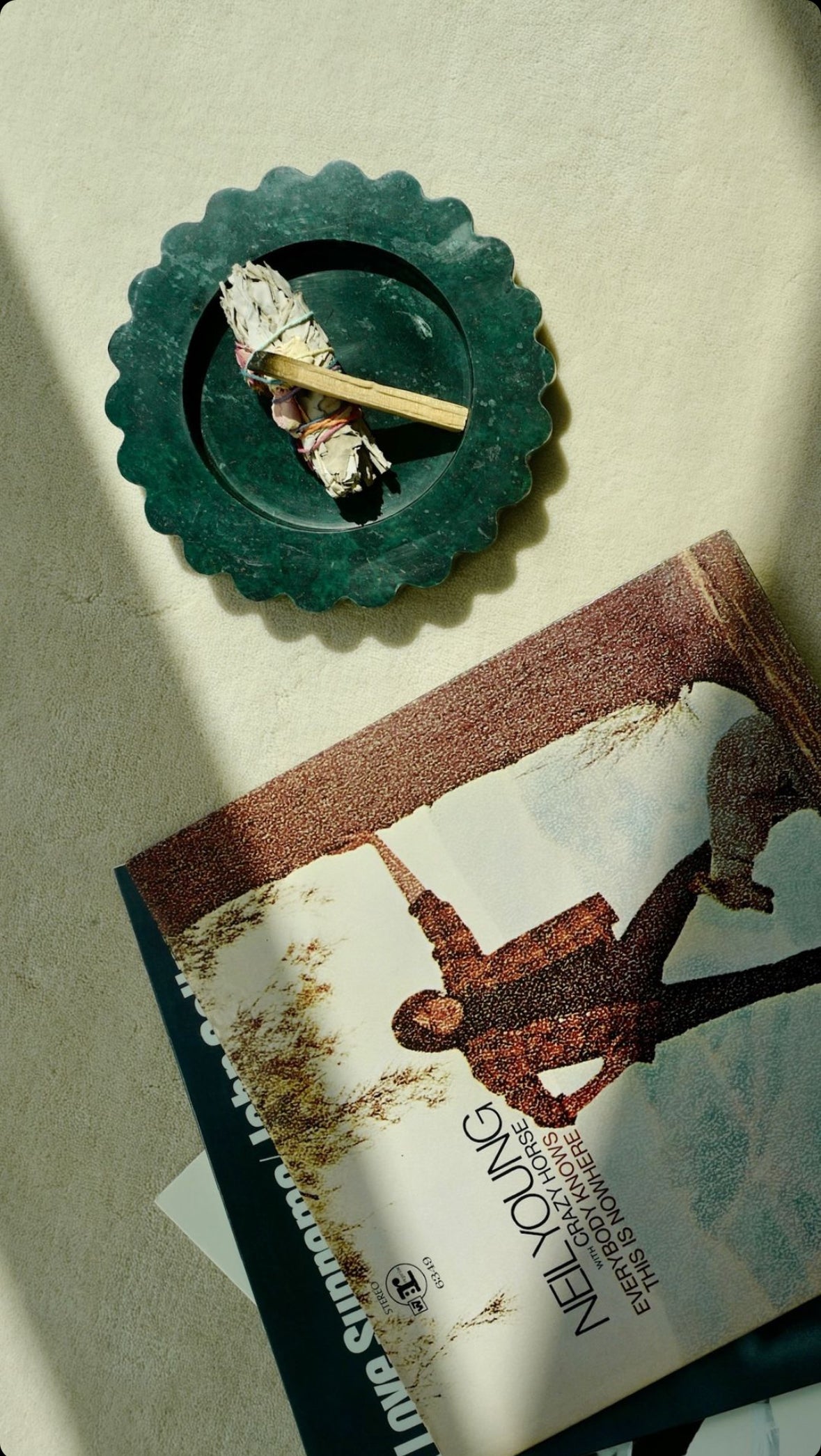 The Floral Tray in Emerald Green is a stunning fine art piece by BR & Sons, expertly hand-sculpted in Rajasthan, India. Crafted from premium untouched green marble stone, this elegant tray is meticulously hand polished to achieve a luxurious finish. Featuring smooth, scalloped edges, this small catch-all tray adds an elevated organic touch to any tabletop or tablescape. Each tray is unique, with variations in color, polish, and pattern that reflect the natural beauty of the stone, ensuring that no two pieces are the same.