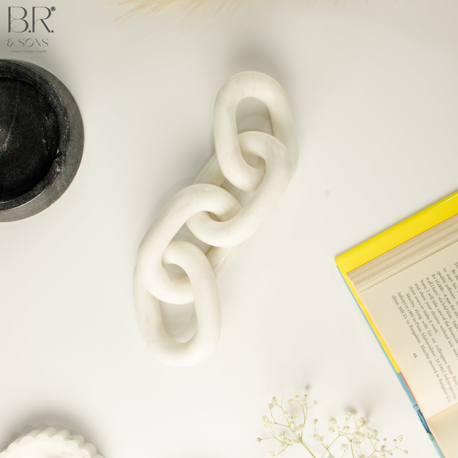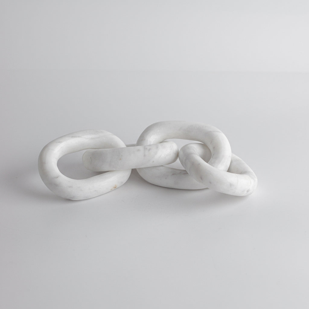This is our White Marble Shackle, made from white marble. It's perfect if you're looking to add a nice touch to your home. You can use it for decorating your room, placing it on a shelf, or even gifting it to someone special. The natural white marble gives it a rich and classy look. It's useful, beautiful, and made with care.