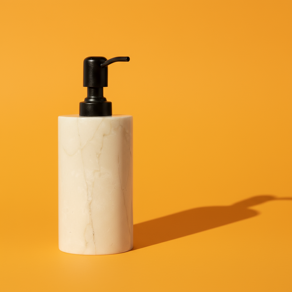 This is our Beige Italian Marble Soaps Dispenser, made from Italian Beige Marble. It's perfect if you're looking to add a nice touch to your home. You can use it for decorating your room, placing it on a shelf, or even gifting it to someone special. The natural Italian Beige Marble gives it a rich and classy look. It's useful, beautiful, and made with care.