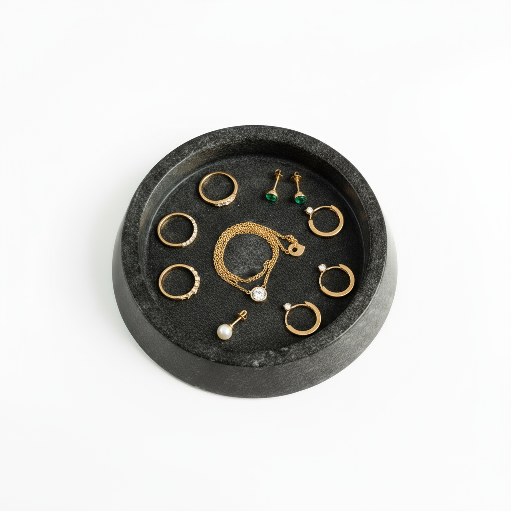 This is our Black Taper Trinket Tray, made from Black Marble. It's perfect if you're looking to add a nice touch to your home. You can use it for decorating your room, placing it on a shelf, or even gifting it to someone special. The natural Black Marble gives it a rich and classy look. It's useful, beautiful, and made with care.