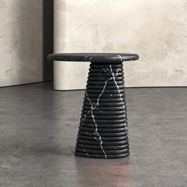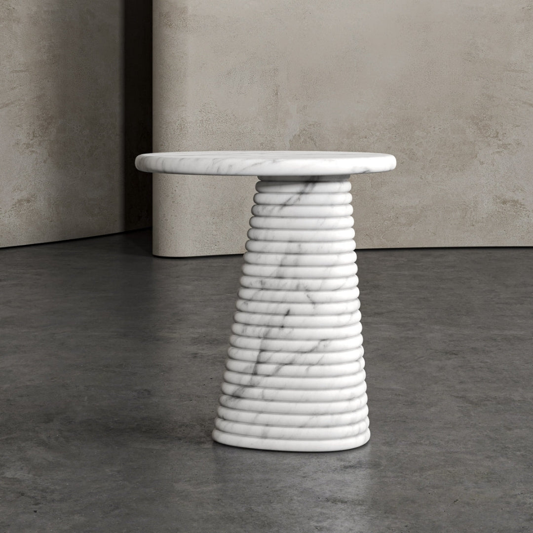 This exquisite designer Italian marble side table is a perfect blend of timeless elegance and expert craftsmanship. Meticulously handcrafted by skilled Indian artisans, the table showcases an impeccable fusion of Italian luxury and traditional Indian precision. The smooth, polished marble top radiates sophistication, while the sturdy base is carefully sculpted to ensure durability and aesthetic appeal. Each detail, from the flawless finish to the intricate design, reflects a commitment to quality and artistry. This piece not only serves as a functional table but also elevates the luxury and refinement of any room it graces, adding a touch of opulence to your home décor.