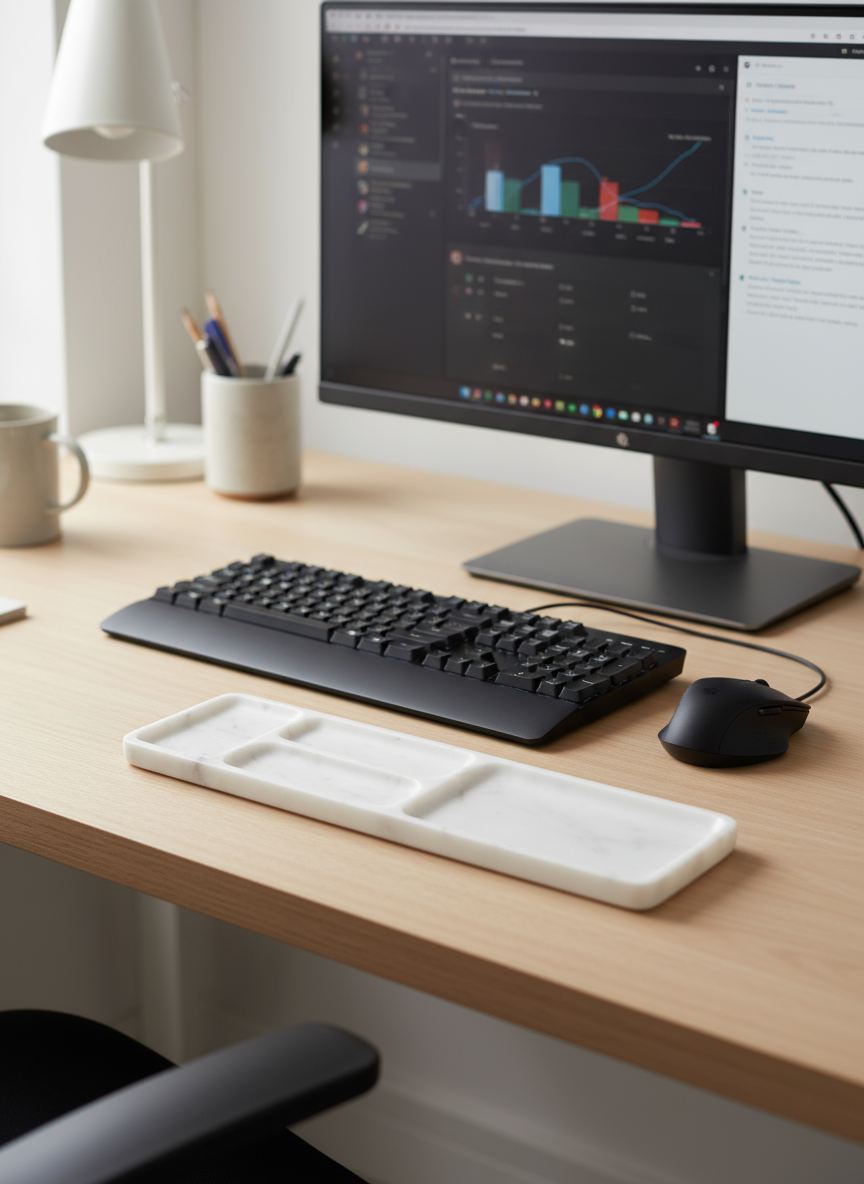 This marble desk tray is a perfect blend of functionality and sophistication, ideal for maintaining an organized and elegant workspace.